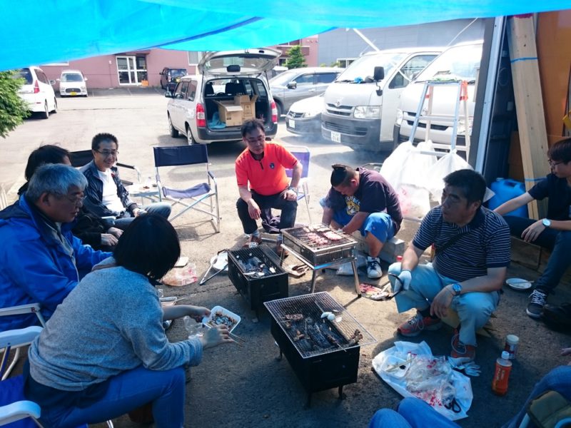 親睦会「肉の日」 今年も恒例の焼肉を会社の駐車場で行いました。 雨の予報でしたが日ごろの行いが良かったのか心地よい天気の中で 美味しい焼肉を堪能できました。 crane2019-06-26T10:11:32+09:002019/6/1|親睦会・慰労会|