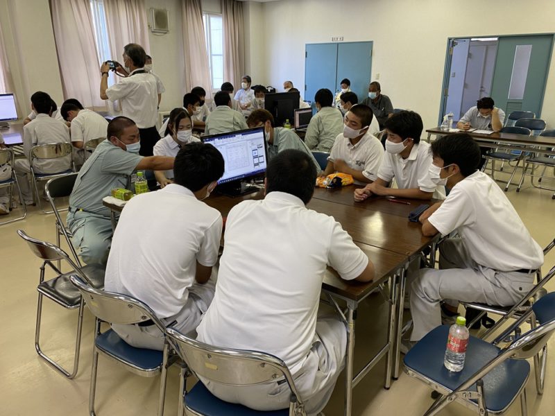 また、今年は気温33℃という猛暑の中での実習体験された生徒の皆さん、大変お疲れさまでした。外業実習、内業実習ともに真剣に取り組んでいる姿が印象的でした。また、最後のCAD製図を見ても良く出来ていたと思います。Good!!^^